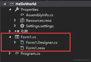 这里有一个重点,在定义Form1类的时候含有一个关键字partial,这里就不得不说C#语言设计一个重要的特性了,能作为大多数人开发上位机的首选,C#有一个特性就是设计的时候界面与后台分离,但是类名相同,首先看一下工程文件结构: