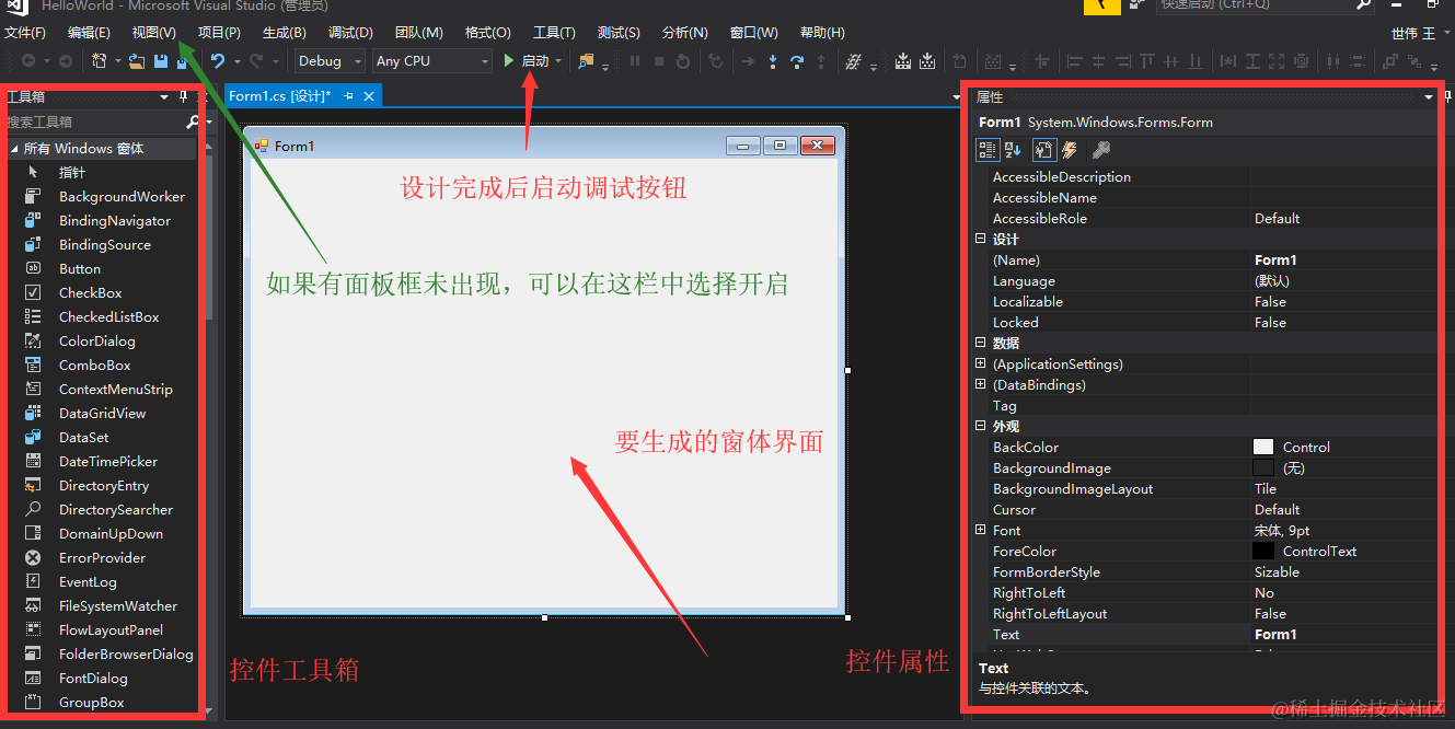 19 Application.Run(new Form1()); //调用Form1类的构造函数,创建一个Form对象,一切由此开始