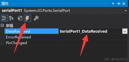 接下来开始最后一个任务 —— 串口接收,在使用串口接收之前要先为串口注册一个Receive事件,相当于单片机中的串口接收中断,然后在中断内部对缓冲区的数据进行读取,如图,输入完成后回车,就会跳转到响应代码部分: