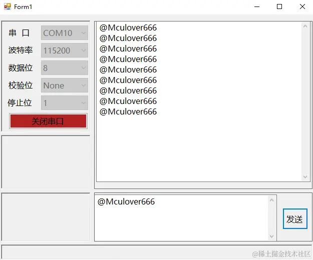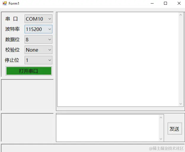 串口助手在单片机开发中经常被用来调试,最基本的功能就是接收功能和发送功能,其次,串口在打开前需要进行一些设置:串口列表选择、波特率、数据位、校验位、停止位,这样就有了一个基本的雏形;然后我们在下一篇中在此功能上添加:ASCII/HEX显示,发送,发送新行功能,重复自动发送功能,显示接收数据时间这几项扩展功能;