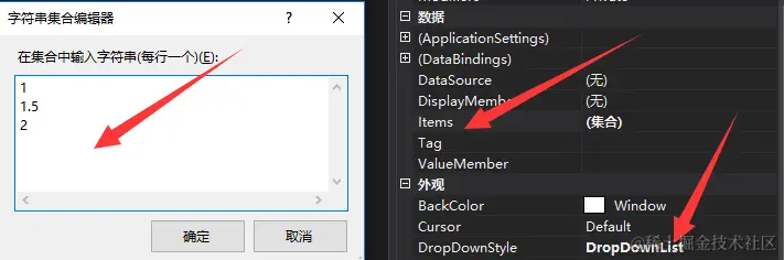 用来显示下拉列表;通常有两种模式,一种是DropDown模式,既可以选择下拉项,也可以选择直接编辑;另一种是DropDownList模式,只能从下拉列表中选择,两种模式通过设置DropDownStyle属性选择,这里我们选择第二种模式;