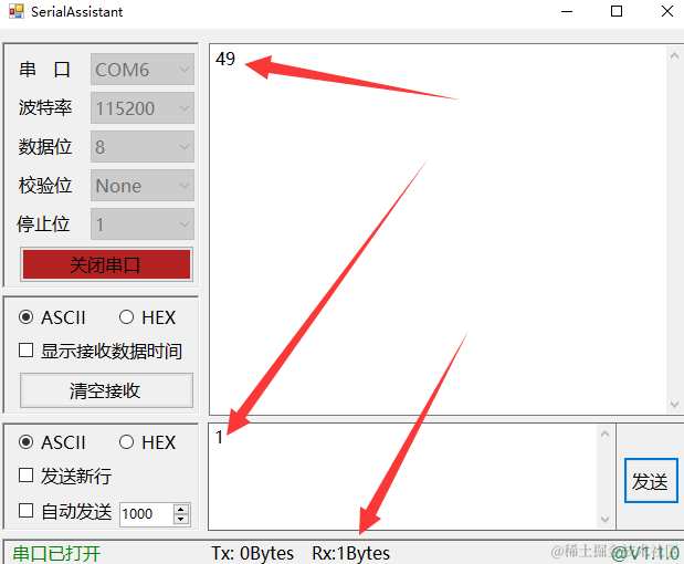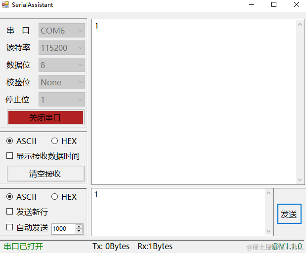 首先为了避免发送出错,启动时我们将发送按钮失能,只有成功打开后才使能,关闭后失能,这部分代码简单,自行编写;