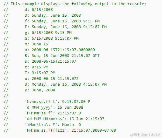 这个时候current_time是一个DateTime类型,通过调用ToString(String)方法将其转化为文本显示,具体选用哪种见下图: