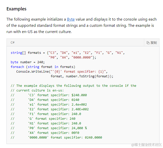 在第3节中我们分析了byte.ToString()方法,它可以将byte类型直接转化为字符显示,比如接收到的是字符1的ASCII码值是49,就将49直接转化为“49”显示出来,在这里,我们需要将49用十六进制显示,也就是显示“31”(0x31),这种转化并没有什么实质上的改变,只是进行了数制转化而已,所以采用格式控制的ToString(String)方法,具体使用方法见下图: