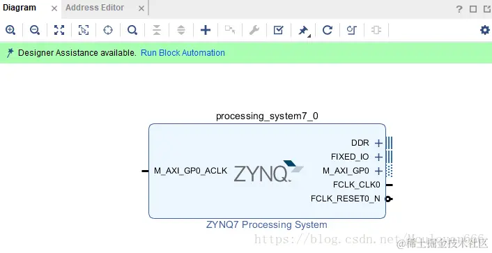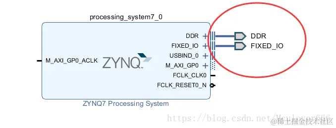 自动连接完成后,可以看到ip核的DDR端口和FIXED_IO端口已经导出,与实际开发板配置对应: