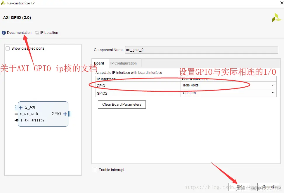首先对AXI GPIO ip核双击进行设置: