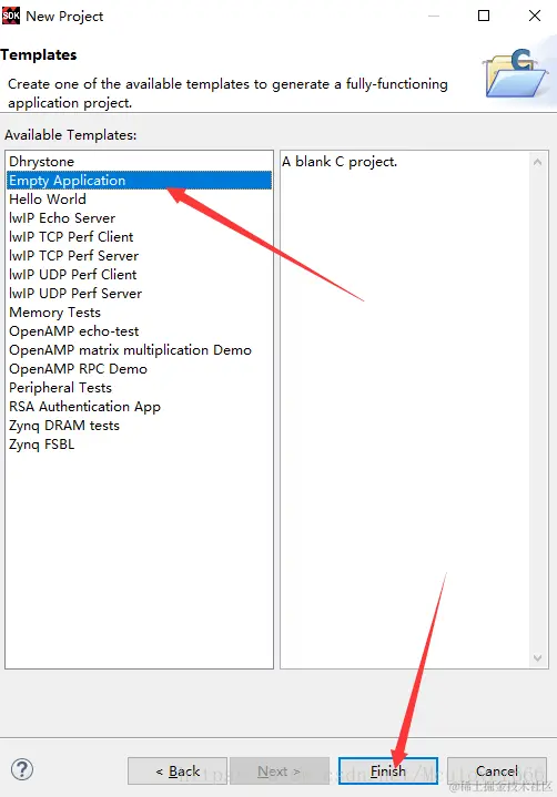 在SDK中左上角“File -> New -> Application Project”,创建一个空工程: