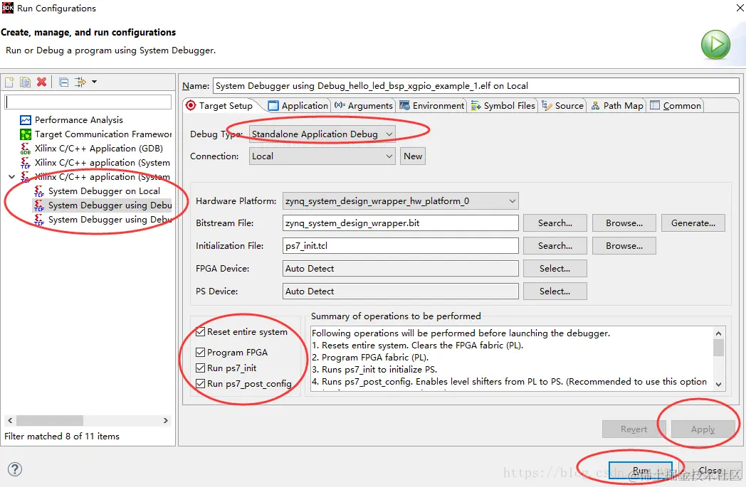 因为该设计中包含PL端设计比特流,所以在run程序前需要设置,右键->Run As -> Run Configurations: