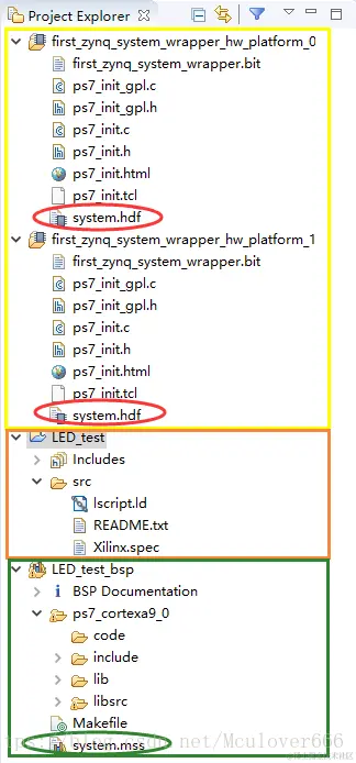 板级驱动包中只需要关注绿色的文件system.mss,这个文件说明了该工程中板级驱动支持包的所有信息,包括: