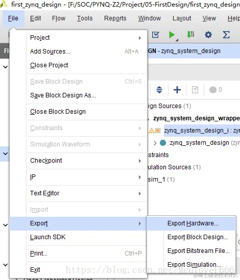接下来导出整个设计的硬件设计文件(hdf)供SDK进行软件设计使用,因为设计中包含PL端设计,所以要勾选包含Bitstream文件: