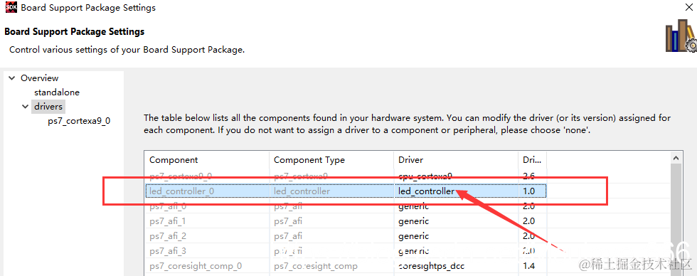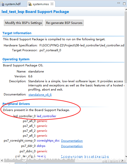检查一下库有没有被分派到LED_Controller外设,打开system.mss文件,可以看到外设驱动中存在led_controller_0: