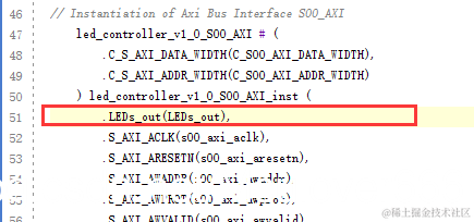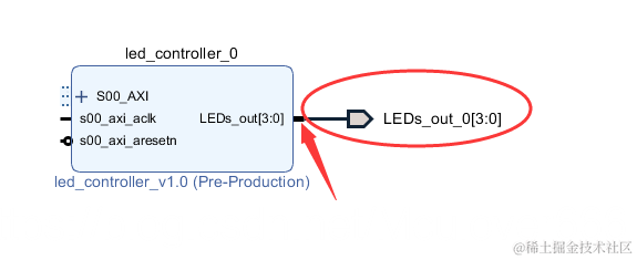 打开led_controller_v1_0_S00_AXI.v文件,找到Users to add ports here,然后在其后添加需要的端口: