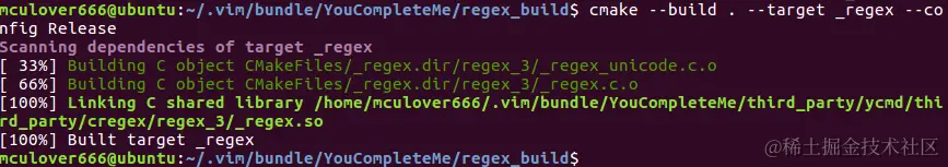 cmake -G "Unix Makefiles" . ~/.vim/bundle/YouCompleteMe/third_party/ycmd/third_party/cregex