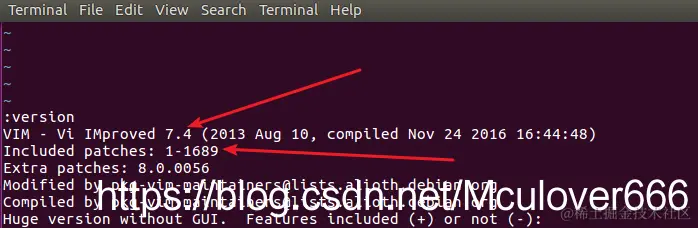 在vim的末行模式输入:version: