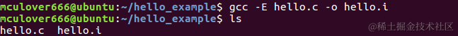 使用gcc -E 源文件对源文件进行预处理,-E参数表示gcc在预处理之后停止编译,为了方便查看预处理的文件,使用-o 生成的文件名指明生成的文件名,所以使用命令:gcc -E hello.c -o hello.i: