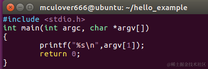 因为之前编写程序的时候我们是将 main函数传入的第一个字符串参数打印,所以在执行的时候要传入参数,使用命令./hello hello,world: