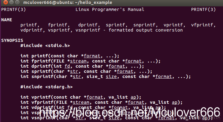 可以使用man+<选项>+名称命令函数帮助: