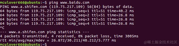 这样既可以确保虚拟机可以正常上网了,使用ifconfig检查一下是否获取到ip地址,再ping一下百度,检查是否可以上外网: