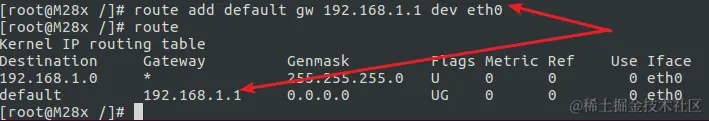 route add default gw 192.168.1.1 dev eth0