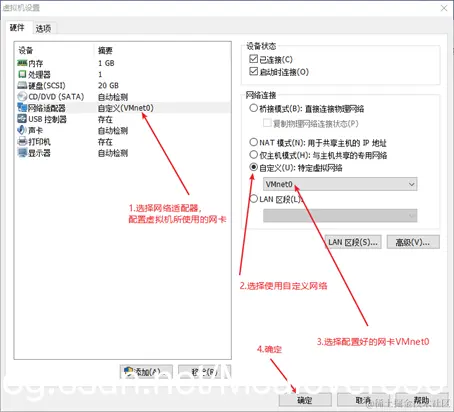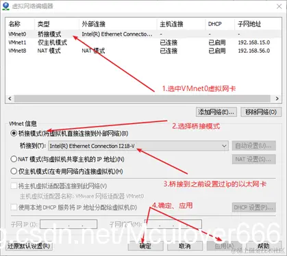 - 首先配置虚拟机使用的虚拟网卡: