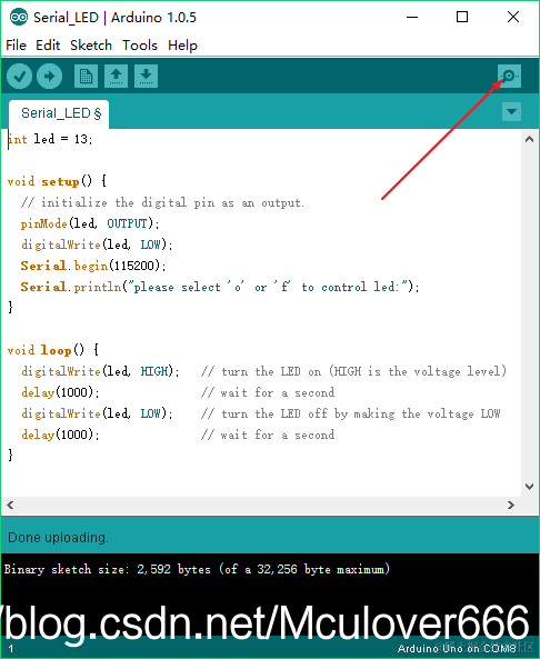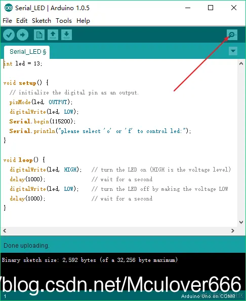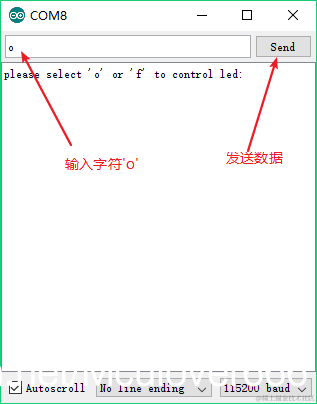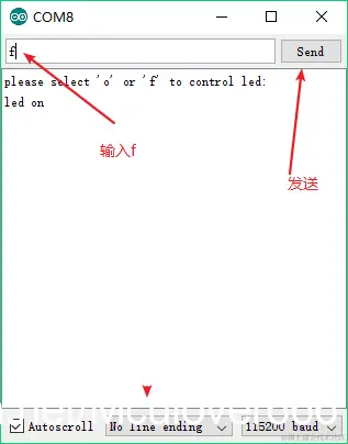 - 关于通信协议:这个是为了练手,肯定是越简单越好,上位机发送’o’,Arduino收到后打开LED,上位机发送’f’,Arduino收到后关闭LED。