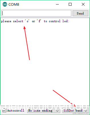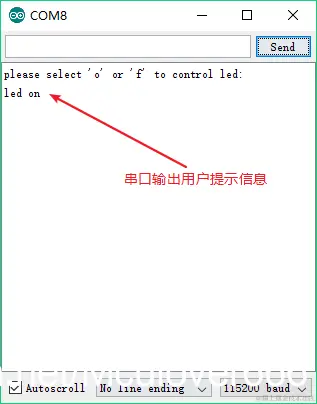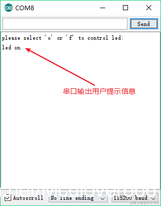 Arduino开发板收到后先打开LED,然后输出提示信息: