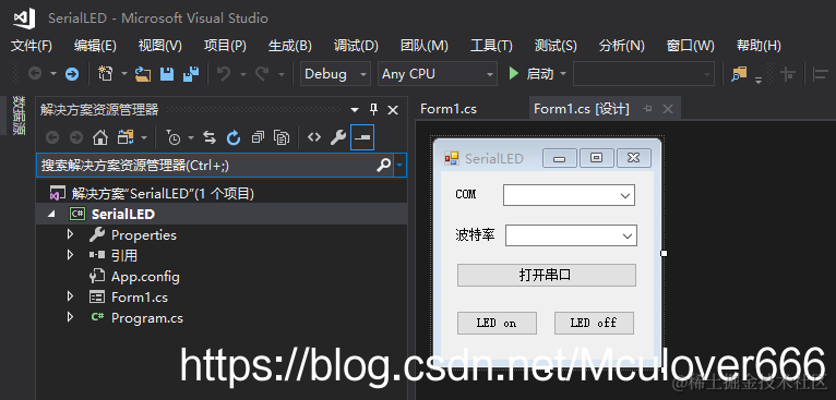 昨天有一个学弟找我帮忙写个程序,任务是编写一个串口上位机控制Arduino板载LED,已经焦头烂额了好久,无从下手,本来想几句话就能说清楚如何做,但是麻雀虽小,五脏俱全,包含了Arduino、串口、C#编程,写篇文章详细的讲述一下该如何做~