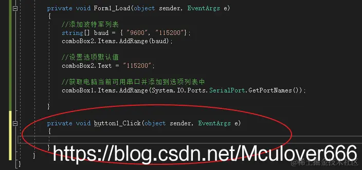 在这个函数中我们编写一些初始化界面的代码,比如添加波特率选项,自动搜索可用串口: