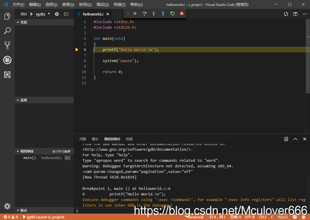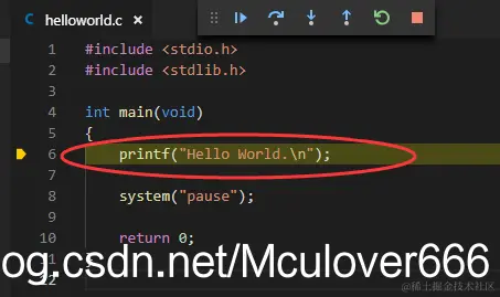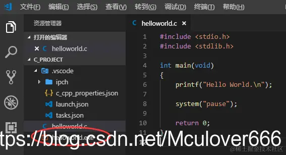 在工作区中添加文件helloworld.c,并编辑如下代码: