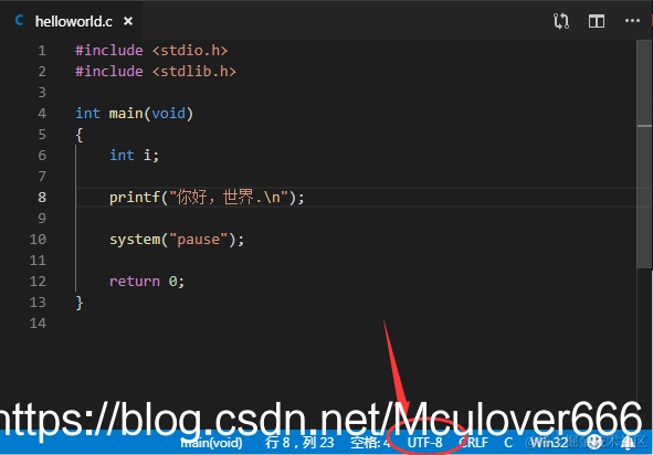 这是因为文件默认是UTF-8编码,在状态栏显示: