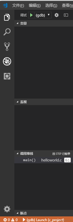 VS Code的左侧是变量查看窗口,监视查看窗口,堆栈查看窗口: