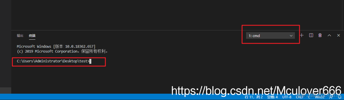 但是VSCode有个好处就是集成终端功能,按下Ctrl+`(键盘ESC下方的那个键),即可调出VSCode的集成终端,如图: