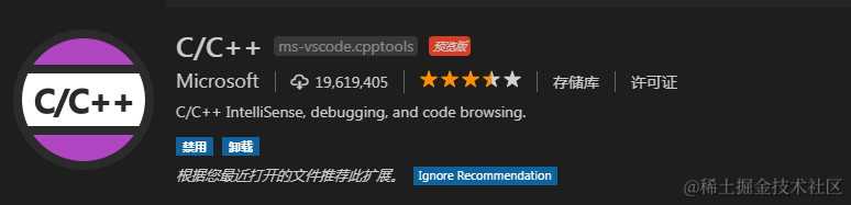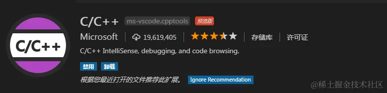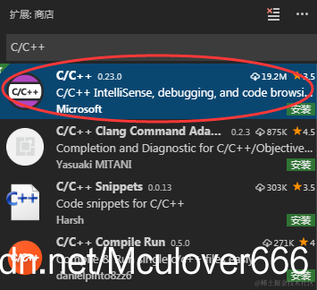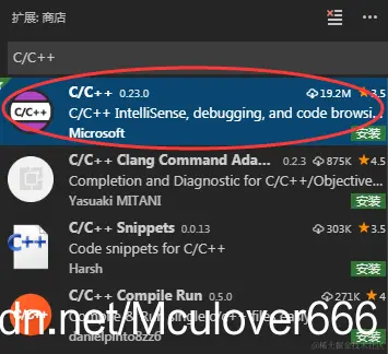 在VScode扩展 市场搜索C/C++,点击安装即可: