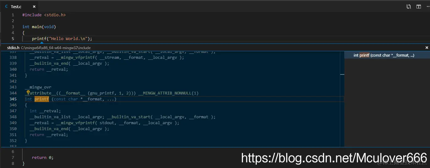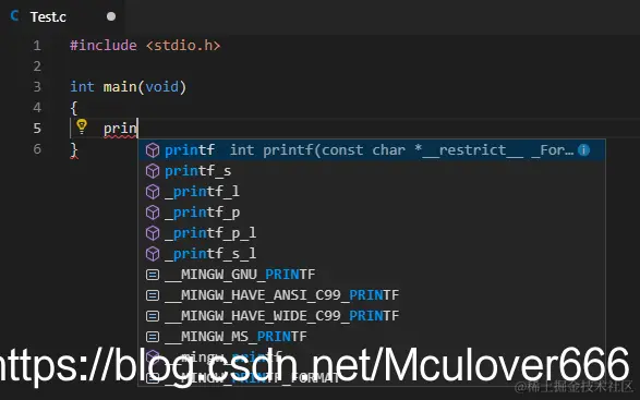 在编辑代码时,因为安装了C/C++扩展,所以有如下的功能: