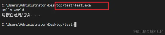 如何运行呢?也非常方便,就像在Linux中一样,直接输入刚刚编译出的可执行文件名即可运行: