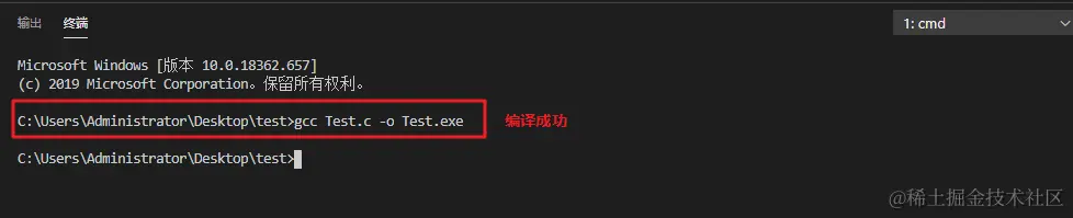 任务执行后,在集成终端窗口中会显示编译器的输出,指示构建成功或者失败,对于成功的构建,输出如下: