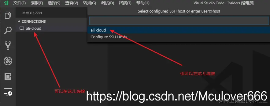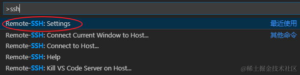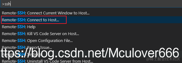Ctrl+Shift+P打开命令面板,输入ssh,选择Connect to Host: