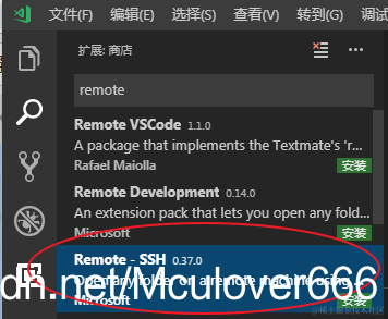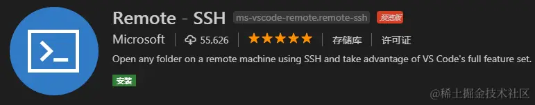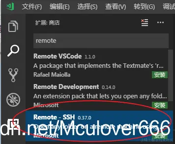 在VS Code扩展市场搜索remote,选择Remote-SSH,点击安装: