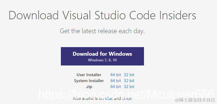 VS Code的远程开发扩展目前还是预览版,所以需要提前下载安装 Visual Studio Code Insiders(下载链接),即VS Code的内部测试版本,然后安装: