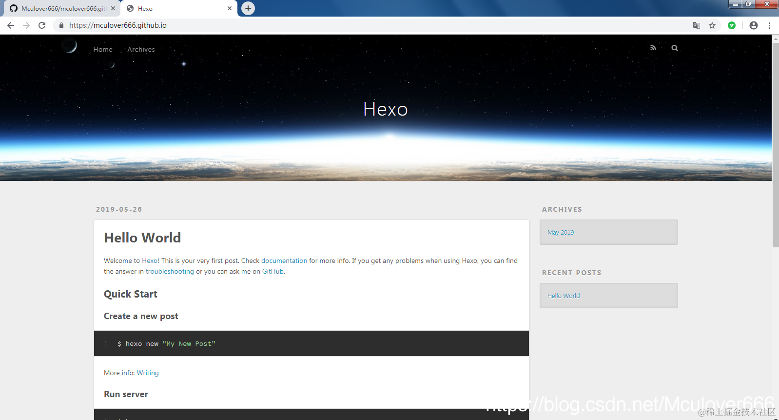 这个时候访问域名mculover666.github.io(mculover666.github.io)即可看到主页: