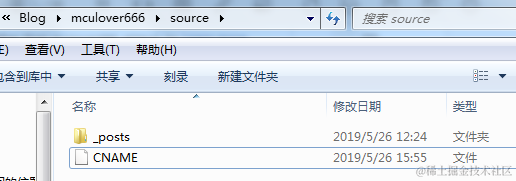 在博客文件的source目录中创建一个名为CNAME文件,不要后缀,写上自定义的域名: