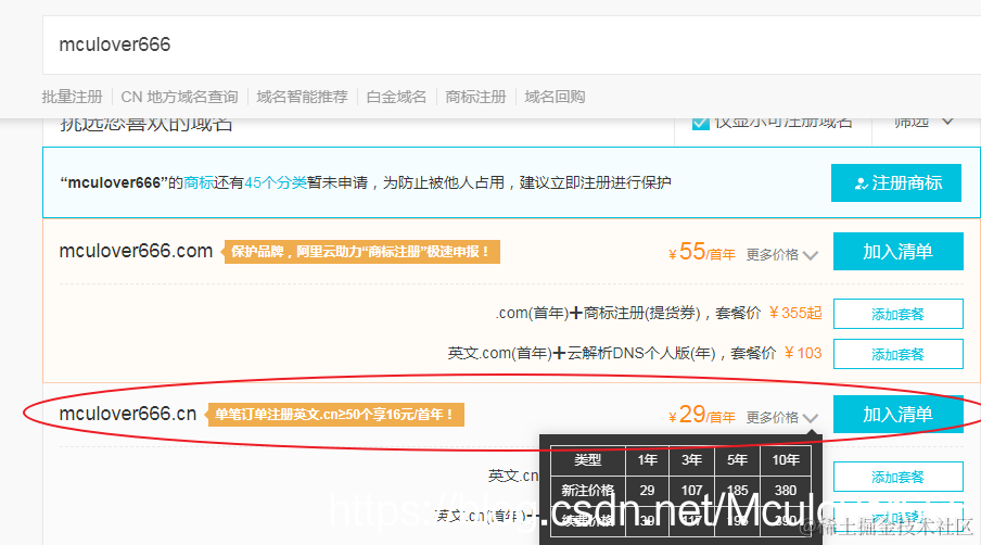 选一个自己喜欢的购买即可,这里我购买的是:mculover666.cn。