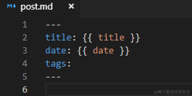 使用hexo new "title"命令新建文章时,默认使用post布局,如下: