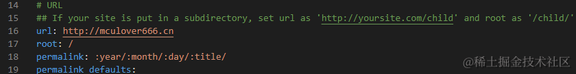 根目录下的_config.yml是整个Hexo框架的配置文件,修改此文件即可自定义Hexo的基本配置。