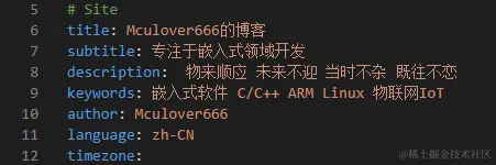 git克隆完成后,打开当前目录下的“_config.yml”配置文件,找到theme的配置选项,将theme选项配置为我们新下载好的next主题即可: