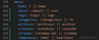 - 设置菜单项的显示文本,在第一步中设置的菜单的名称并不直接用于界面上的展示。Hexo 在生成的时候将使用这个名称查找对应的语言翻译,并提取显示文本,这些翻译文本放置在 NexT 主题目录下的 languages/{language}.yml ({language} 为你所使用的语言,这里选择