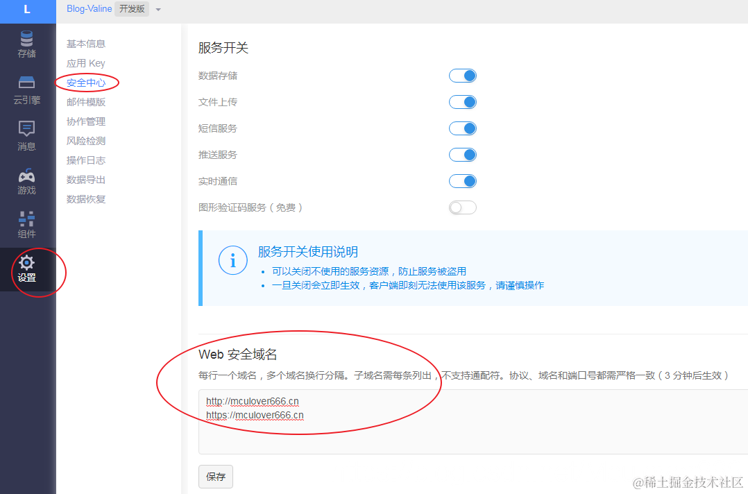 为了数据安全,需要填写应用>设置>安全设置中的Web 安全域名,如图: