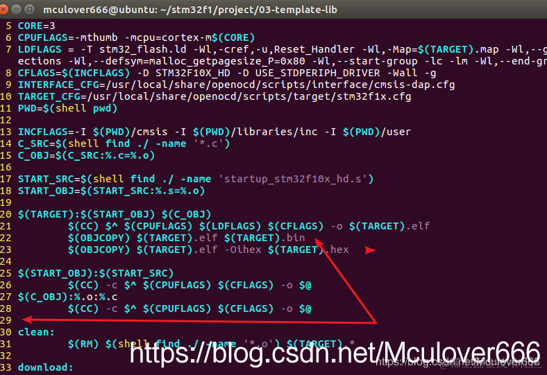 stm32的开发都是基于标准库和HAL库的,HAL我暂且没试,拿标准库来说,需要编写makefile文件,构建整个编译关系,这个其实不是太难,理解了makefile的一些自动变量规则和隐含规则后,就很好编写出这个makefile了,在以后的开发中,只需要进行一些简单的修改就可以了: