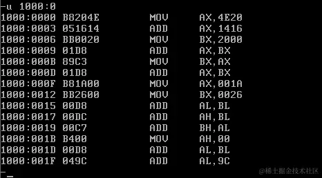 首先修改CS和IP的值,指向程序起始处(1000:0),准备执行程序: