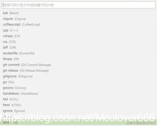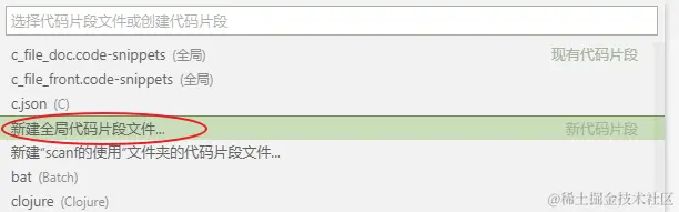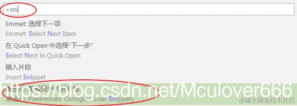 Ctrl+Shift+P打开命令面板,输入sni选择配置用户代码片段: